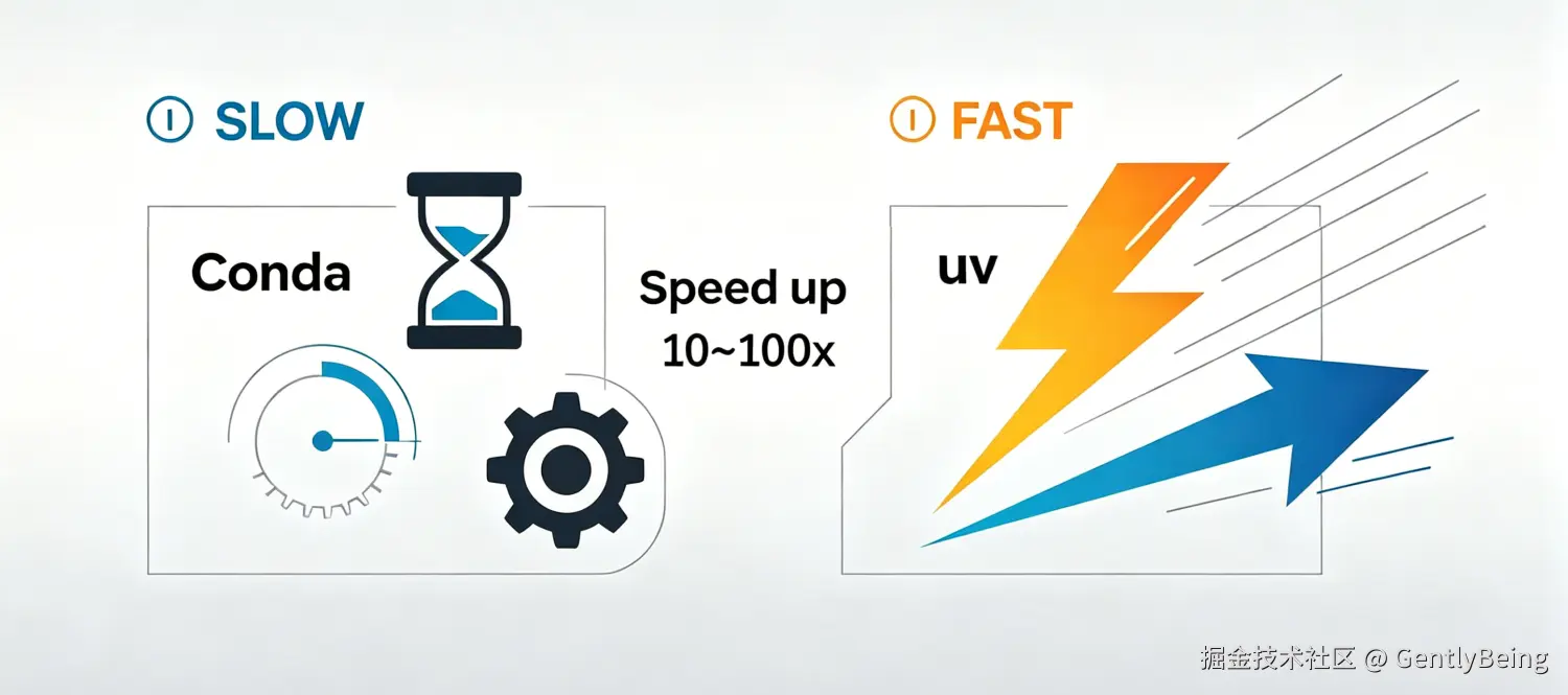 在很多 Python 团队里,conda 长期承担了环境管理、依赖安装、Python 版本切换等多项职责。它功能完整,但也有一个非常现实的问题:慢。创建环境要等待,解析依赖要等待,安装几个常用包也要等待。久而久之,很多开发者把这种等待视为理所当然。