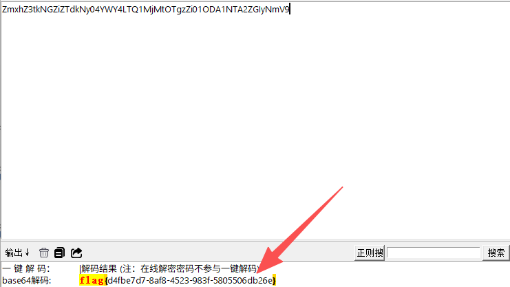 解码得到flag:flag{d4fbe7d7-8af8-4523-983f-5805506db26e}