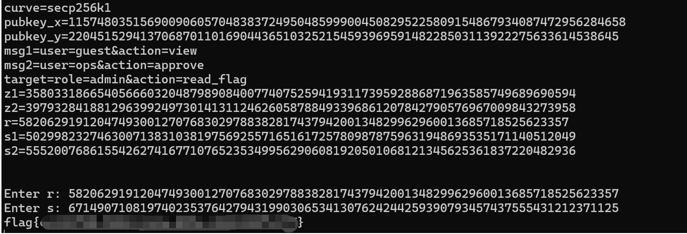 整体思路就是:确定签名拼接规则与固定盐值,使用 Python 获取当前时间戳,按照规则拼接字符串并进行MD5加密生成合法 sign,拼接带ts、sign参数的请求URL,发送 GET请求访问目标接口,解析返回JSON,提取remark字段内容,对Base64字符串解码,输出拿到FLAG