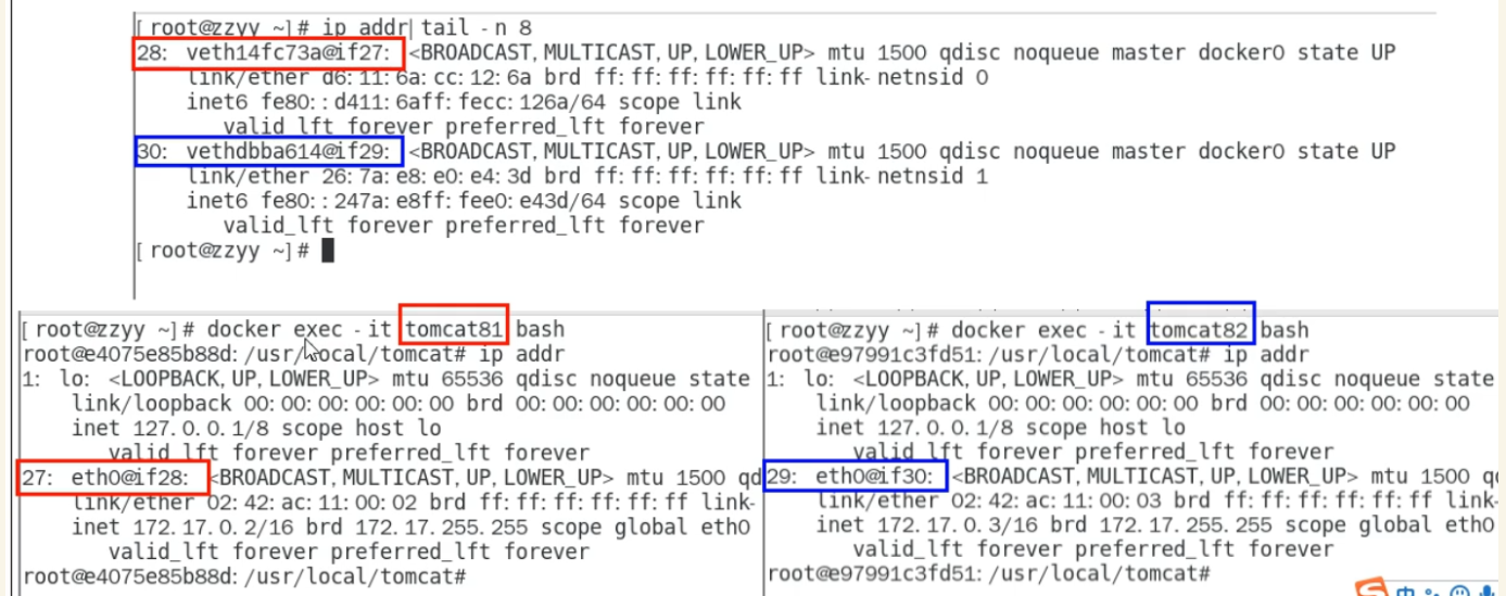 - Docker 在宿主机创建 veth pair(虚拟网卡对)
