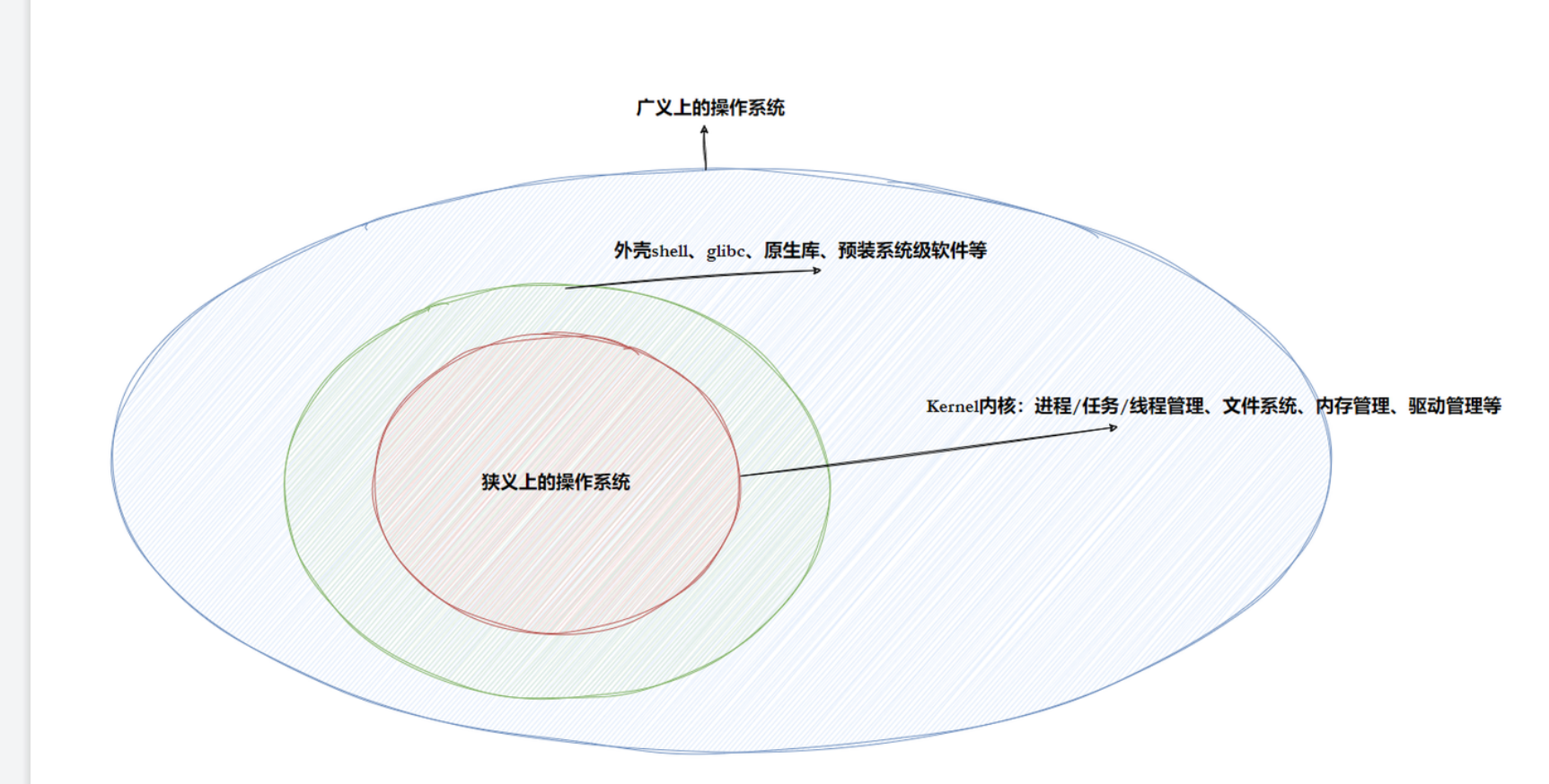我们的程序只要你判断出访问了硬件那么它必须贯穿整个软硬件体系结构。比如printf打印内容到显示器就访问了显示器硬件,其步骤为那么我们写的c程序(开发操作)-->lib(有c标准库方法)找到printf的库函数,其底层封装了系统调用接口,再通过操作系统的驱动管理进行访问-->驱动程序最后交到硬件显示器上。(库在底层封装了系统调用接口)