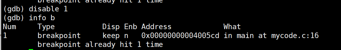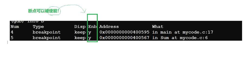 (info b就能看到断点的使能情况)
