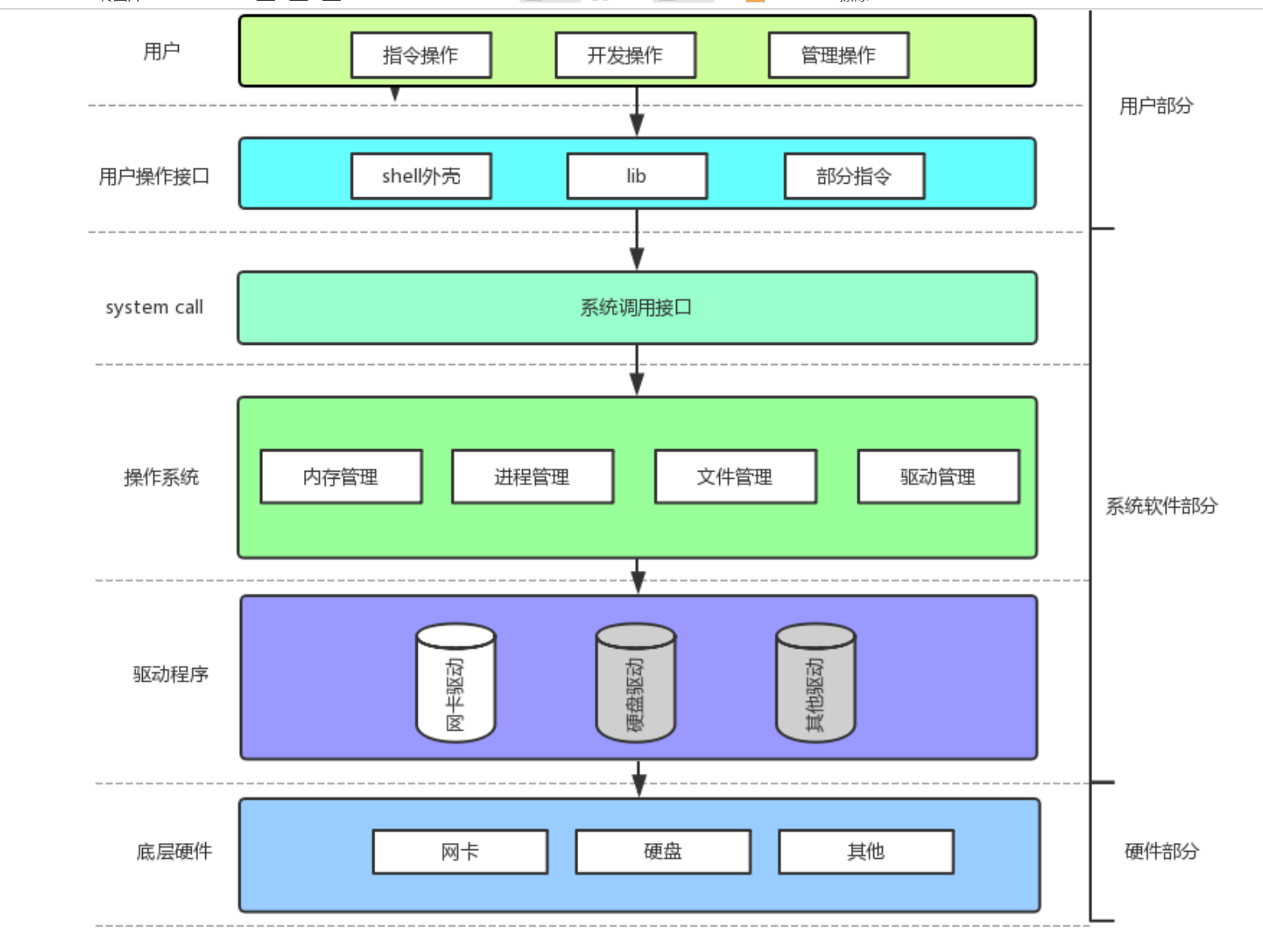 OS(校长)驱动(辅导员)硬件(学生)