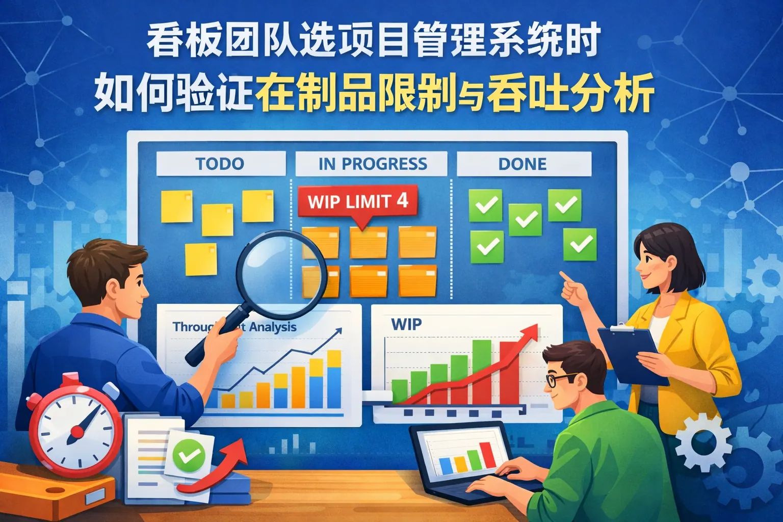 在看板团队选择项目管理系统时,验证其是否真正支持在制品限制(WIP)与吞吐分析,核心在于系统是否能够将流程状态、数量约束与时间数据形成可追溯、可分析、可持续改进的闭环。 一个合格的系统不仅要"能设限制、能看图表",还要帮助团队基于真实数据理解瓶颈、预测交付能力,并在不增加管理负担的前提下持续优化流程。本文将从概念辨析、验证方法、指标拆解、工具实测、常见误区与未来趋势等多个维度,系统性回答"看板团队该如何验证项目管理系统的在制品限制与吞吐分析能力",为团队在选型阶段提供可操作、可对比的判断框架。