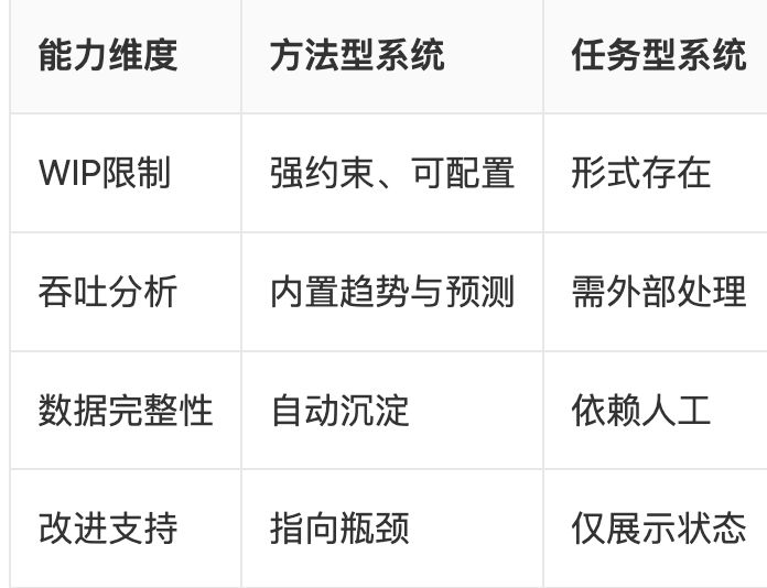 市场上不少项目管理系统在界面上采用看板样式,但并不真正支持看板方法。为了避免选错工具,团队可以从功能完整度与分析深度两个层面进行对比。下表给出了几类常见系统在关键能力上的差异,帮助团队识别"形式看板"与"方法看板"的本质区别。