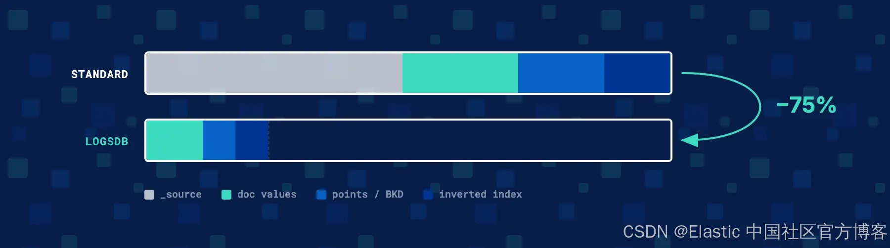 实际结果是:如果你两年前在使用标准 Elasticsearch 做日志摄取,那么当时的吞吐量,大致就是现在 LogsDB 在相同条件下能提供的水平 ------ 同时索引体积还减少了 50--75%。