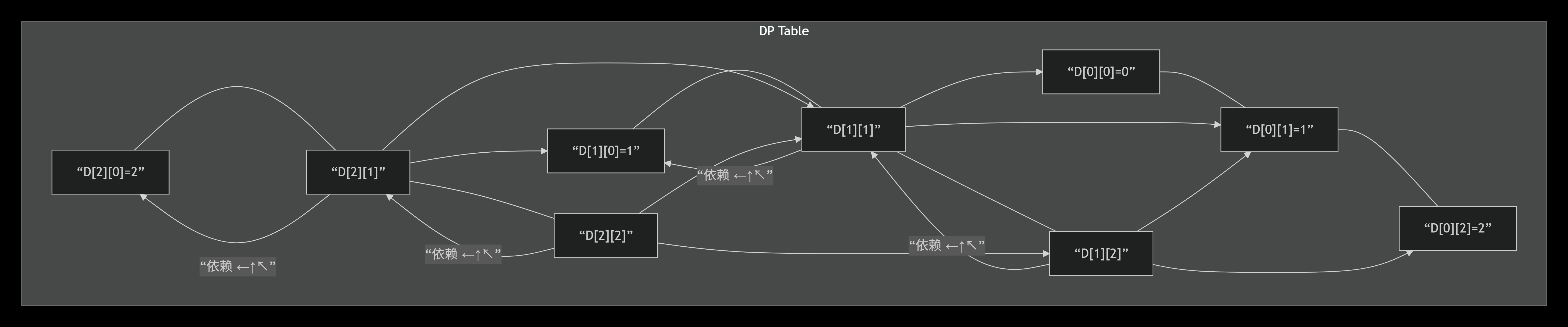如果 word1[i-1] == word2[j-1]:字符相等,不用操作 ,直接继承 dp[i-1][j-1]