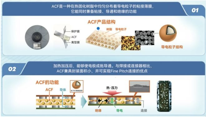 ACF 无法替代常规焊接工艺,专门用于传统锡焊无法实现的精密互连场景,行业标准应用: