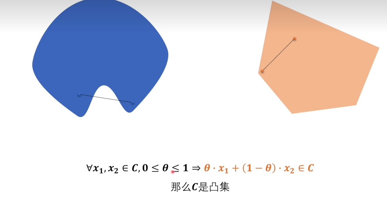 凸集:集合内任意两点的连线仍在集合内。