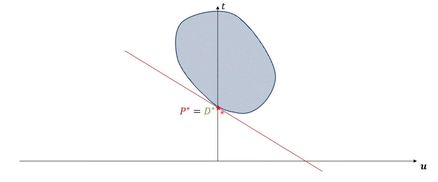 原问题的解是P* = 对偶问题的解是D* 为强对偶关系,即下面这个图: