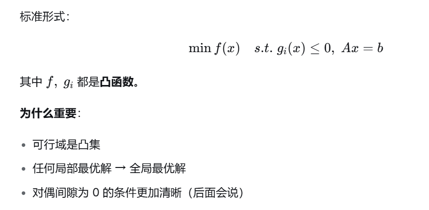 也就是无论遇到什么问题,都可以先找到它的对偶问题,根据对偶问题性质,他是凹函数,可以进行凸优化的方法来解决 。