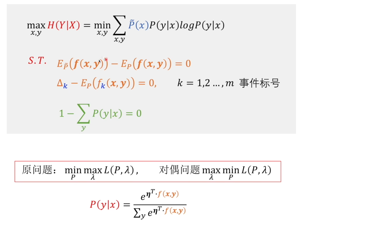 上述为凸优化问题。求最大熵的时候,去求解他的对偶问题即可。