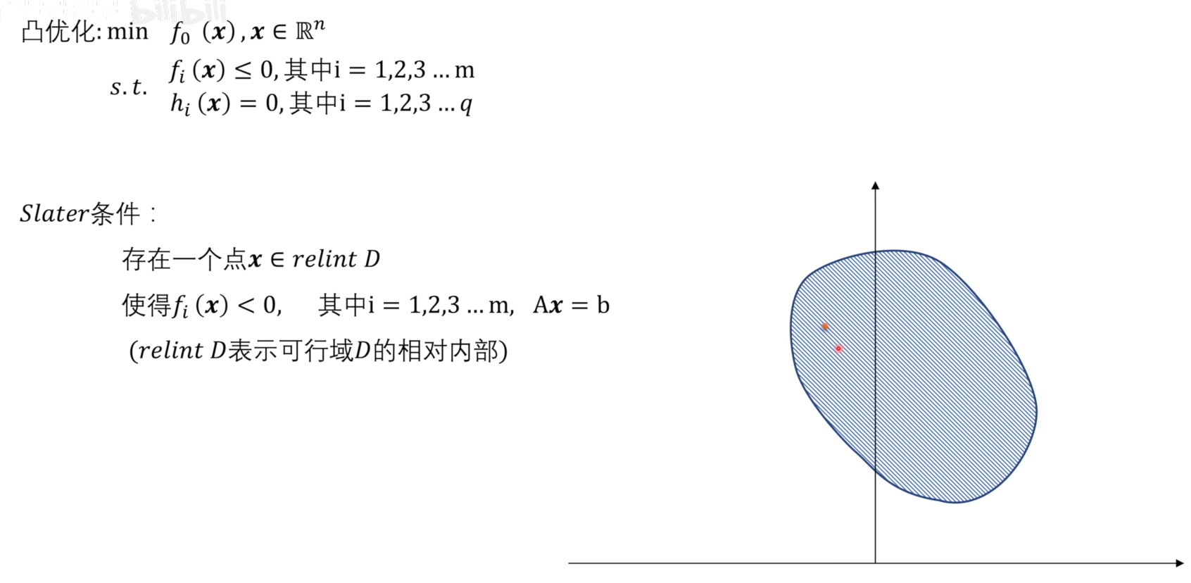 只有满足了slater条件,一个凸优化问题,才是强对偶关系。