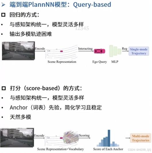 技术路线: 端到端plan query based 回归 多模轨迹困难, 打分 用anchor 先验,天生就是多模 只一个分类打分问题