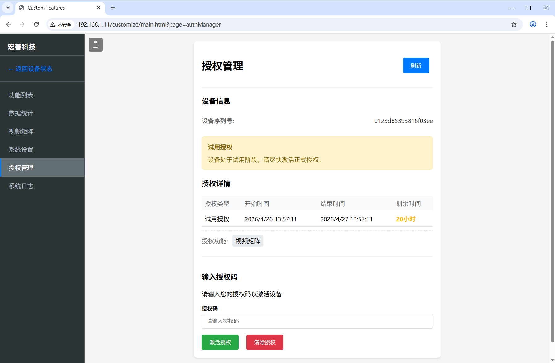 设备管理 授权激活 试用模式 状态监控