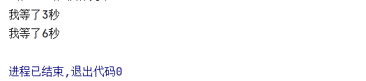 执行后,主线程先打印 "开始计时",3 秒后t1线程输出 "我等了 3 秒",6 秒后t2线程输出 "我等了 6 秒",完美体现了多线程处理异步任务的优势。