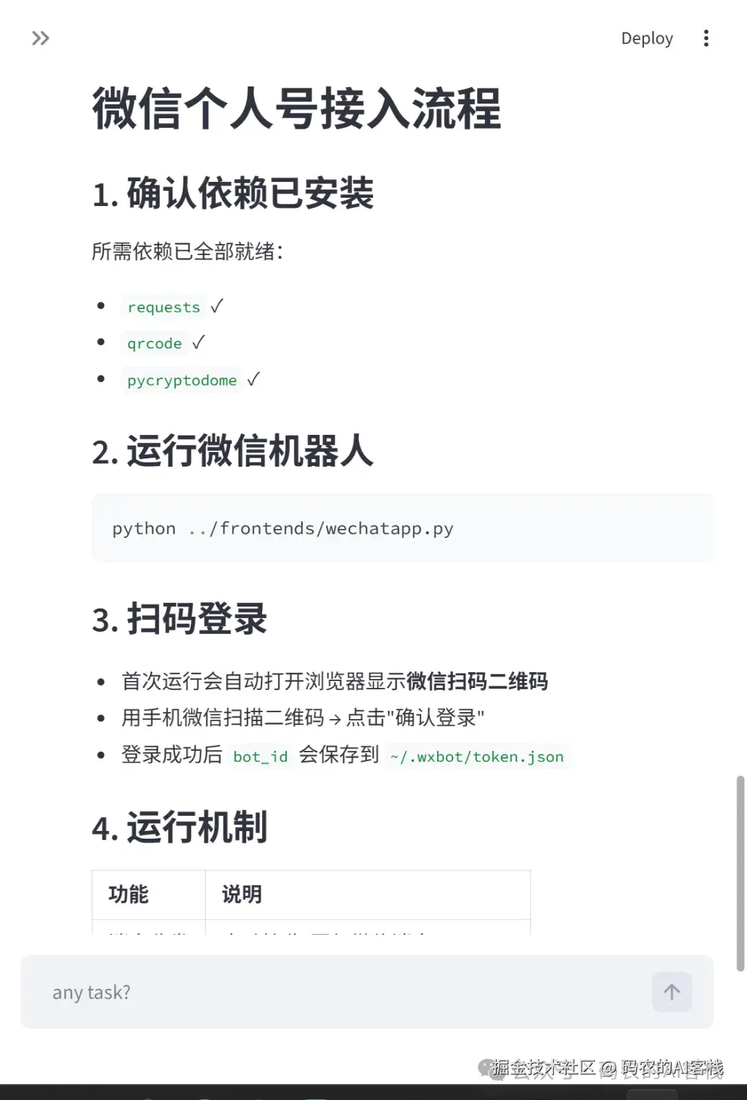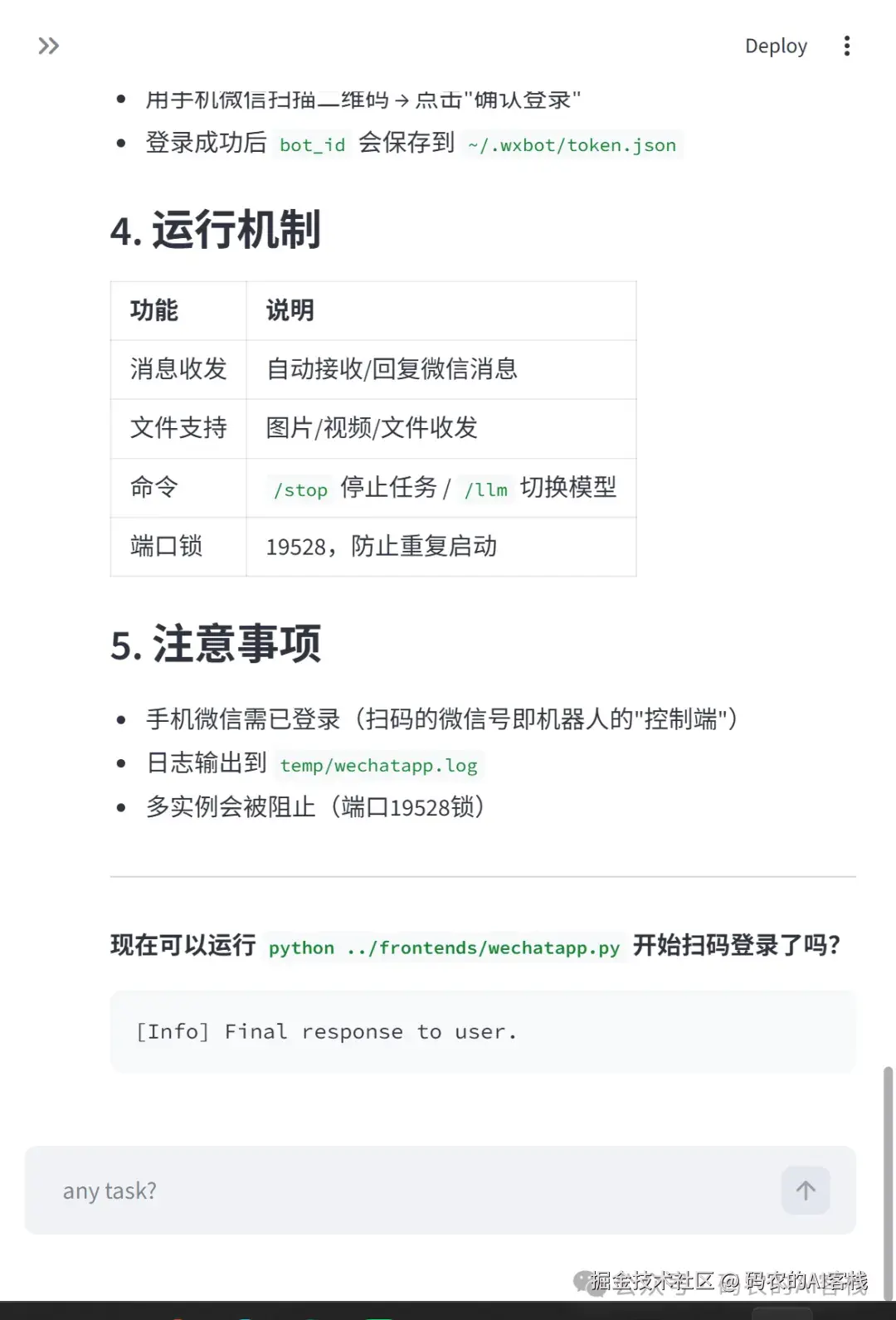 比如我想安装微信的,直接在对话框中,跟他说我要安装微信个人号,让他先去看源码,然后引导我来安装。