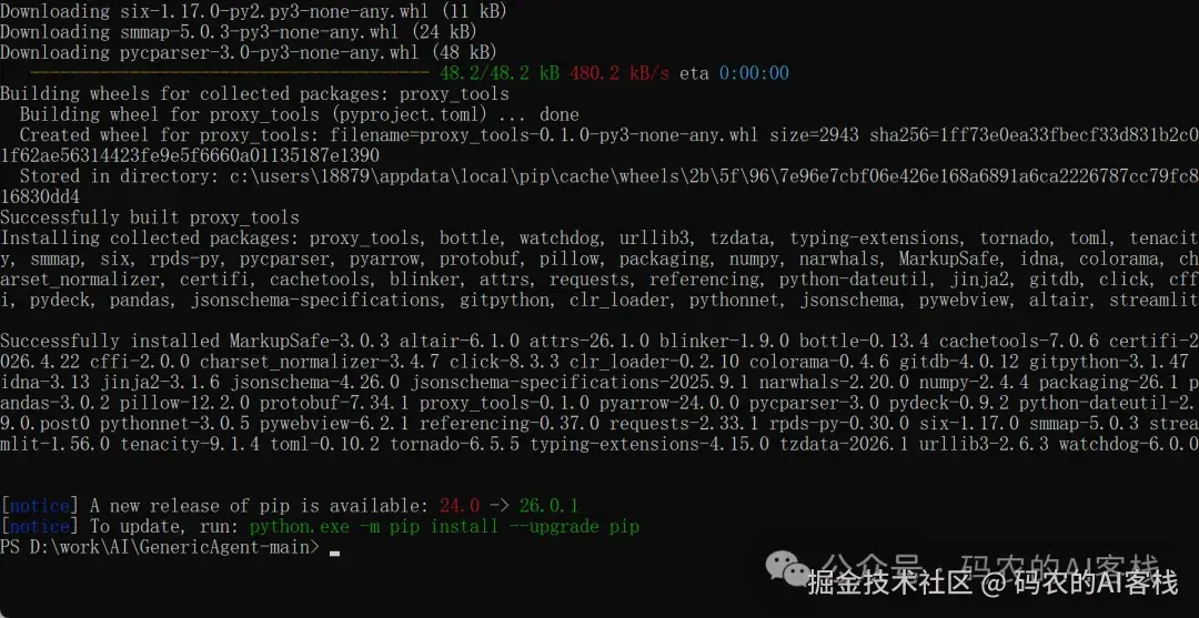 这里没有报错,提示所有依赖都安装好了。