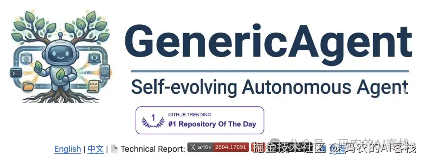GenericAgent(GA) 是由复旦大学知识工场实验室旗下的A3实验室(Advantage AI Agent实验室,与深圳夸夸菁领科技有限公司合作)构建的一个通用型、自进化的大语言模型(LLM)智能体系统。
