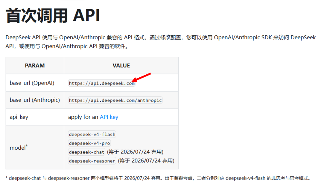 具体的model我们可以去官网看看:首次调用 API | DeepSeek API Docs