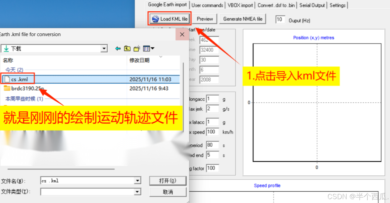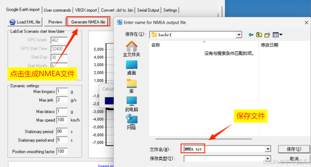 4.继续使用SatGen生成NMEA文件,NMEA是GPS导航设备统一的 RTCM 标准协议,包含坐标、海拔、时间轨迹;