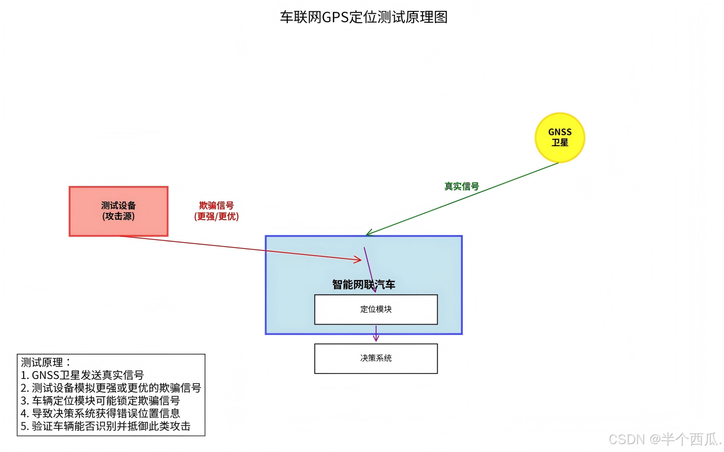 原理就是用"假信号"去骗车,看它会不会"上钩",以此验证定位系统的抗干扰能力和安全性。