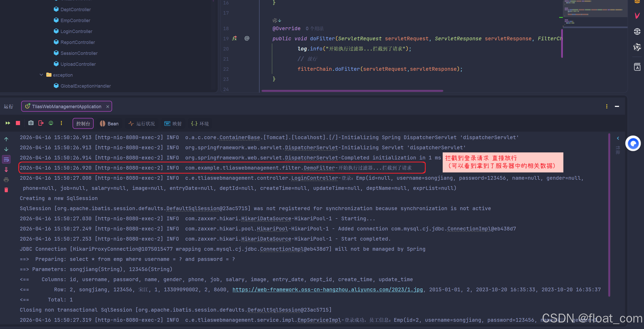(配置完成后,切记将之前的 TokenFilter 上的 @WebFilter 注释掉,避免 Filter 和 Interceptor 同时执行导致二次拦截。)