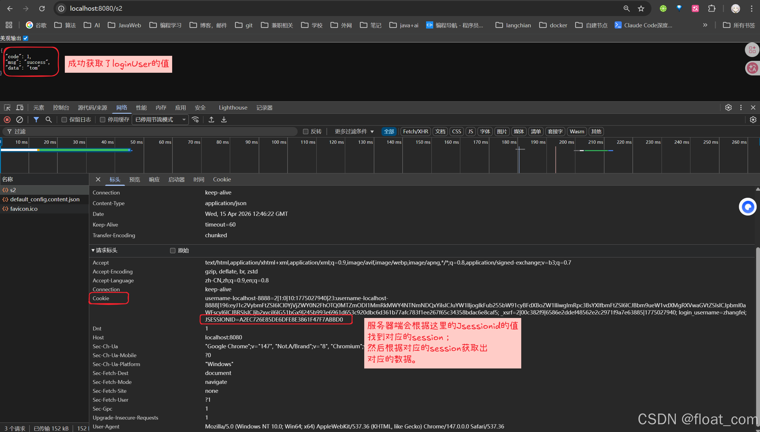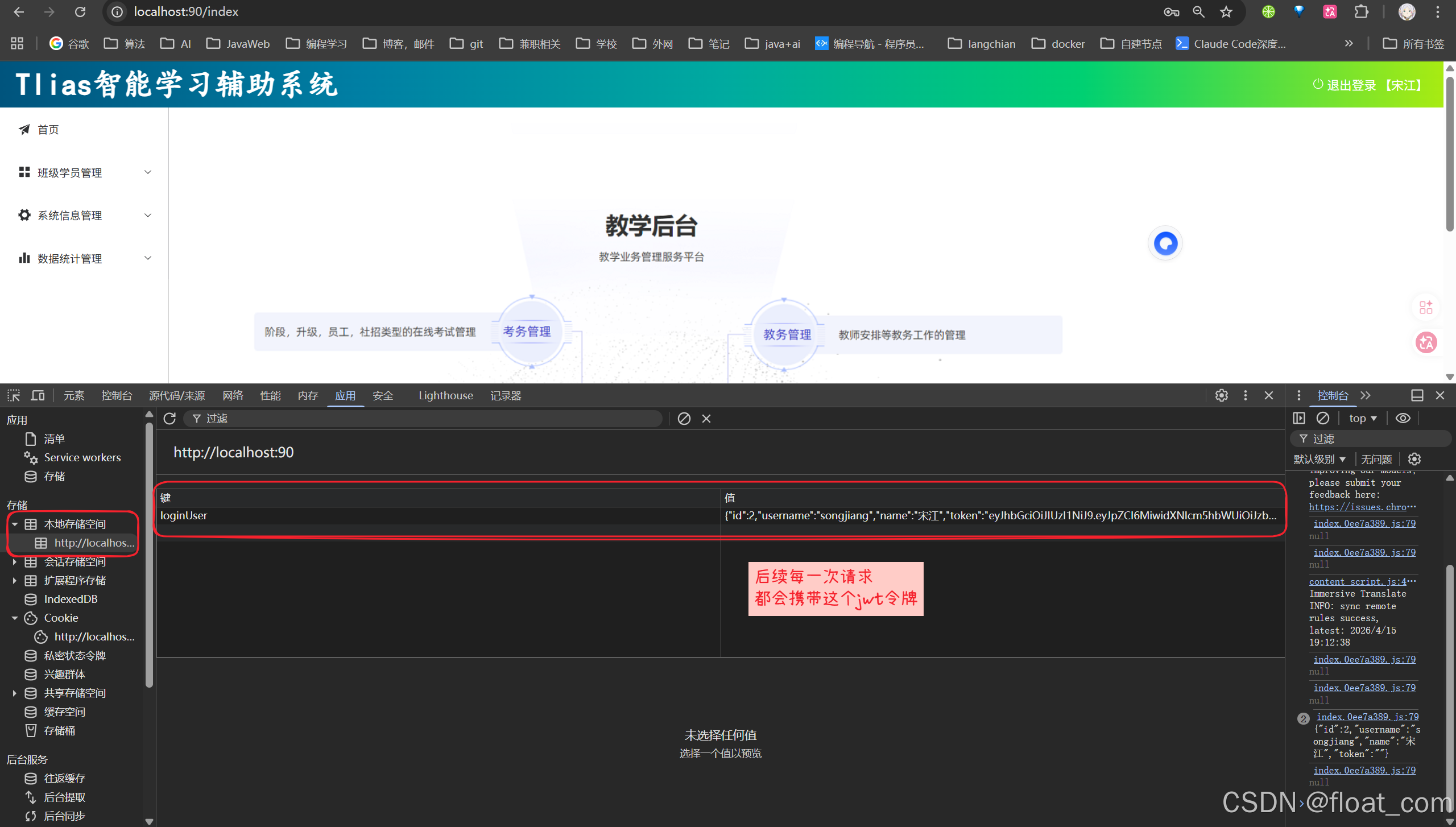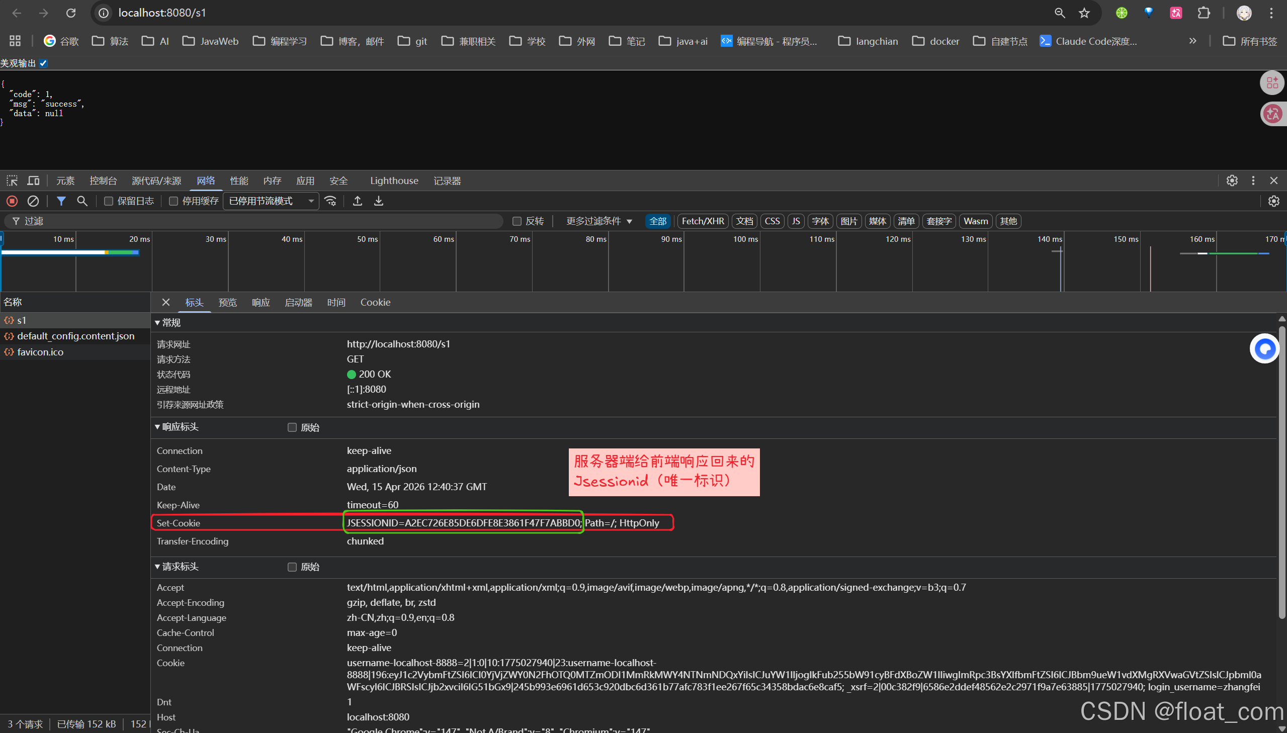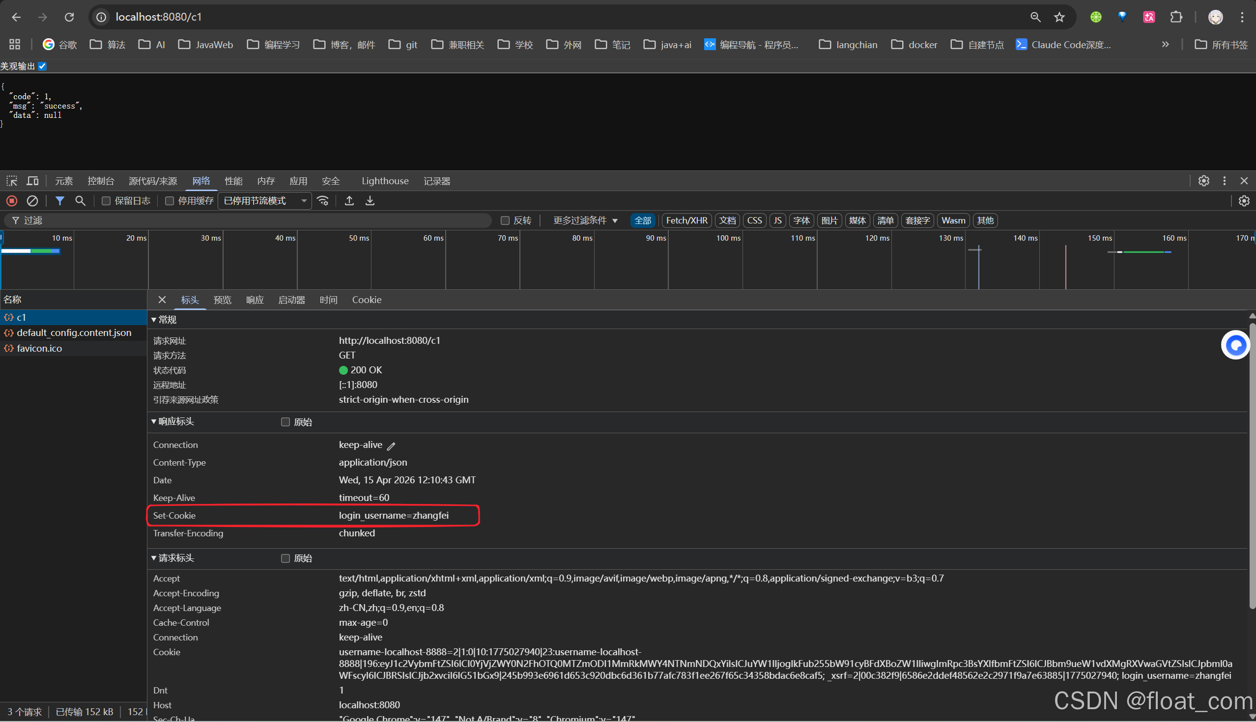 /login请求,得益于excludePathPatterns白名单配置,请求被直接放行并成功下发 Token。