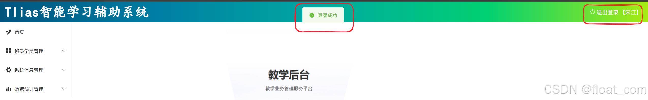 | 响应数据 | Result<LoginInfo> (包含 id, username, name, token) |