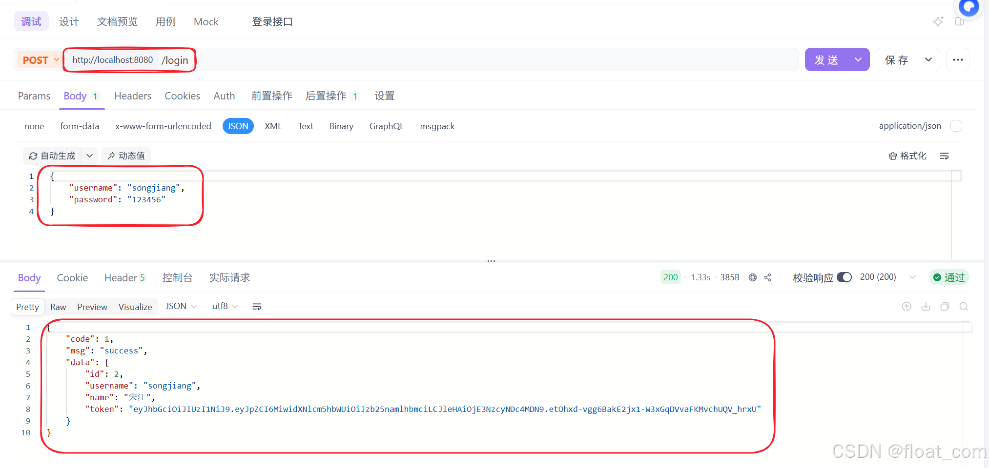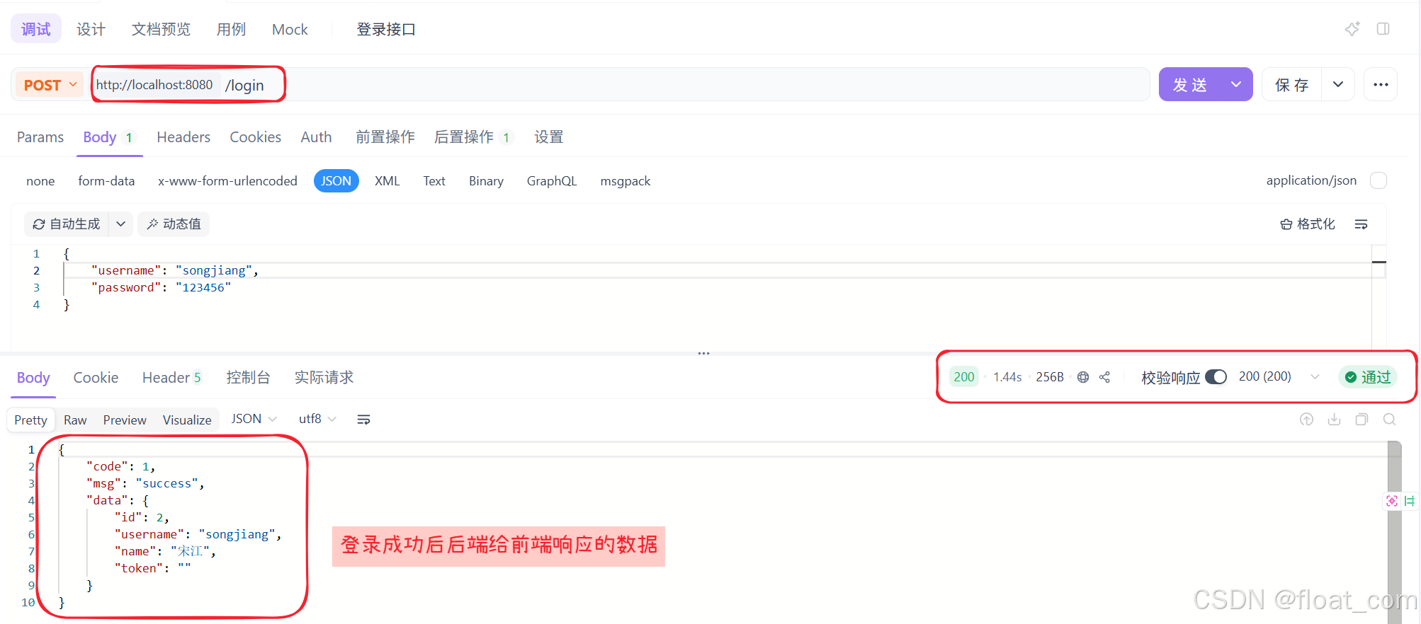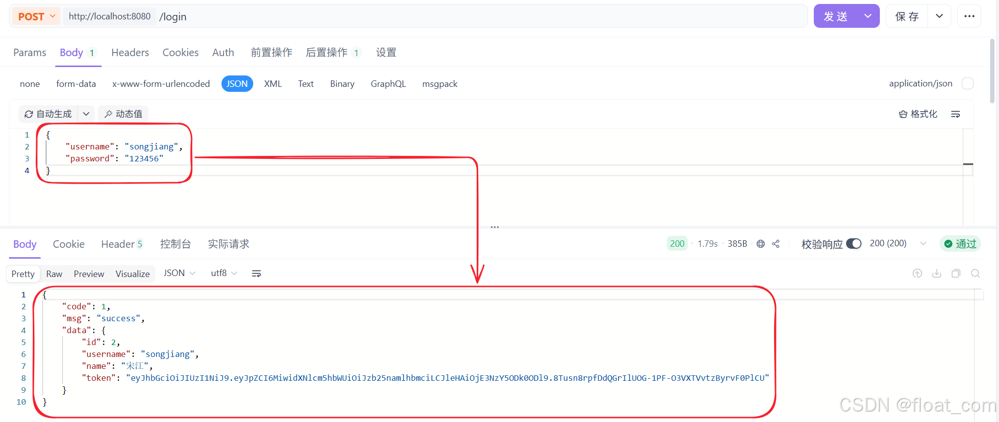 前端发起 POST 请求,提交 JSON 格式的账号密码: