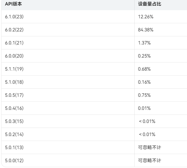 存量设备API版本使用数量参考
