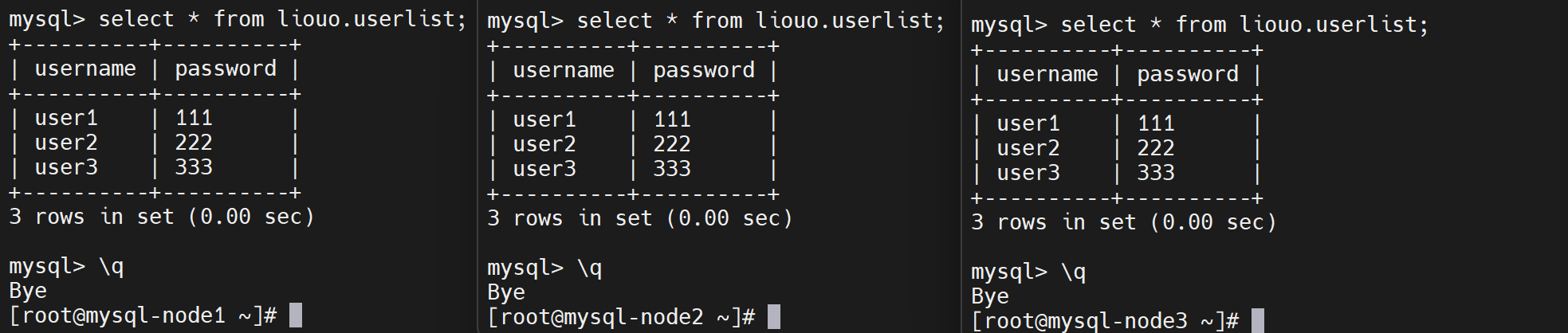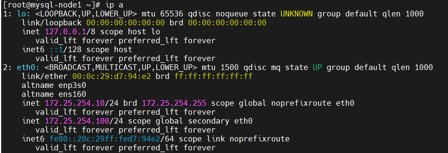 [root@mysql-node1 ~]# mysql -uroot -plee -h172.25.254.30