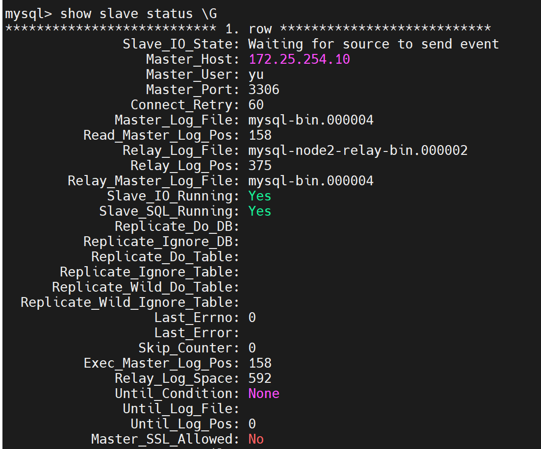 SHOW SLAVE STATUS确保Slave_IO/SQL_Running均为 Yes - 配置 SSH 免密登录(包括 Manager 到各 Node 以及 Node 之间)