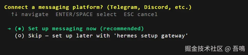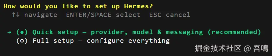 在命令行中输入上面的命令,便可以开始对Hermes Agent进行配置。