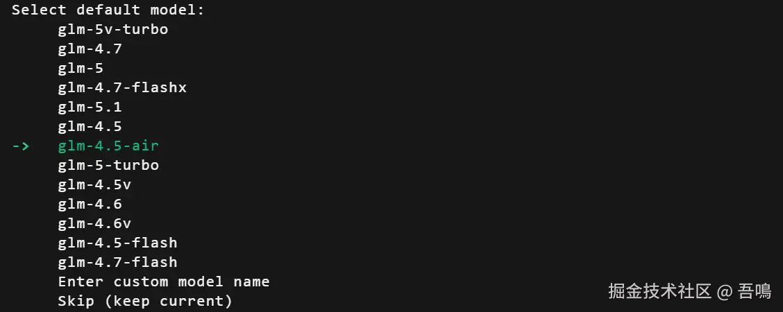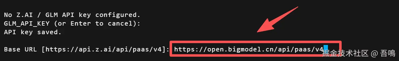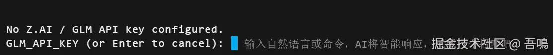 因为我习惯使用智普的大模型,所以这里我们也是选择智普的大模型,选择"Z.AI",便会开始要求输入API KEY。