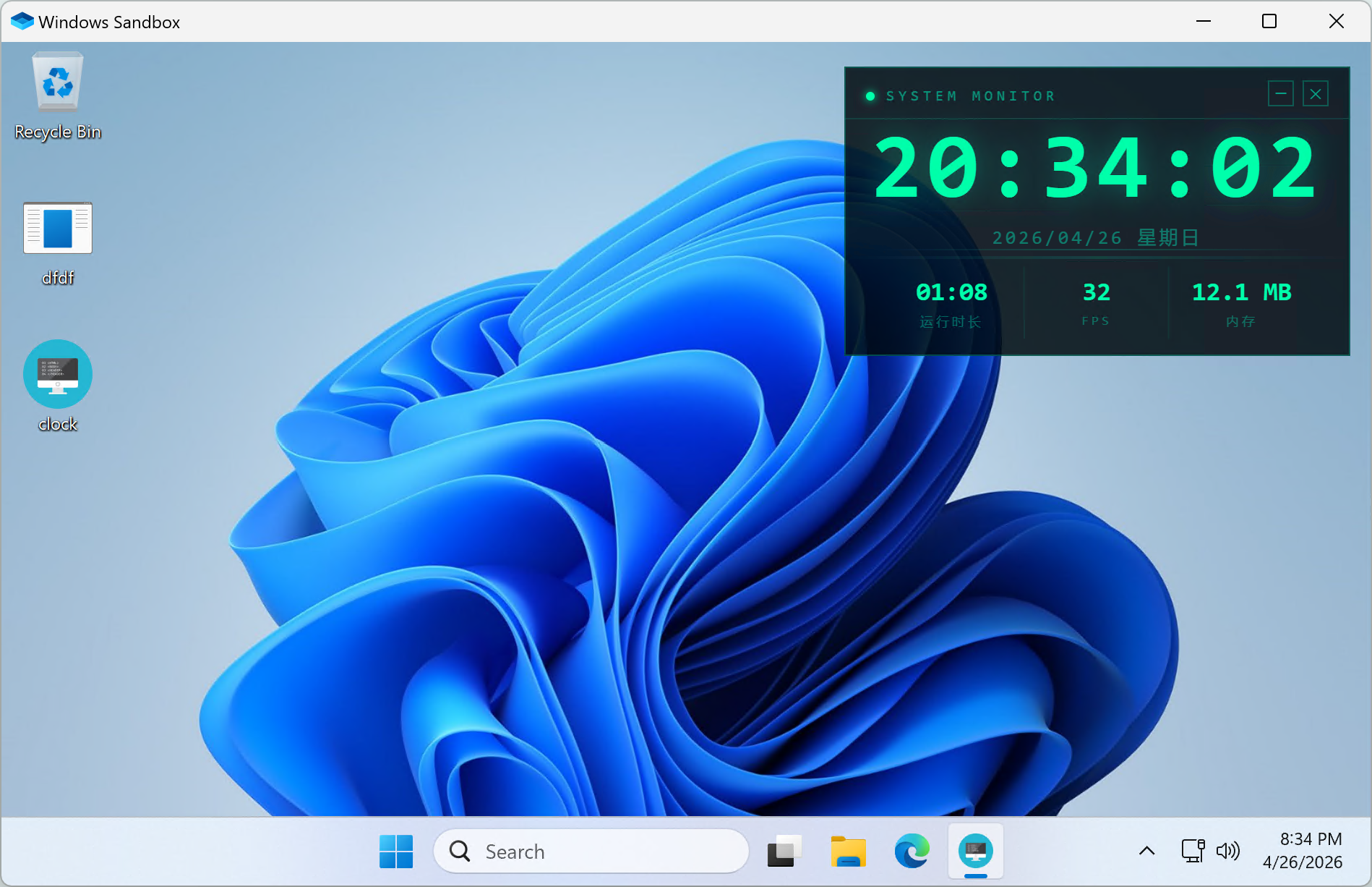 打包后运行效果如下,赛博朋克风格的时钟面板悬浮在桌面上,带有扫描线动画和霓虹灯光效果: