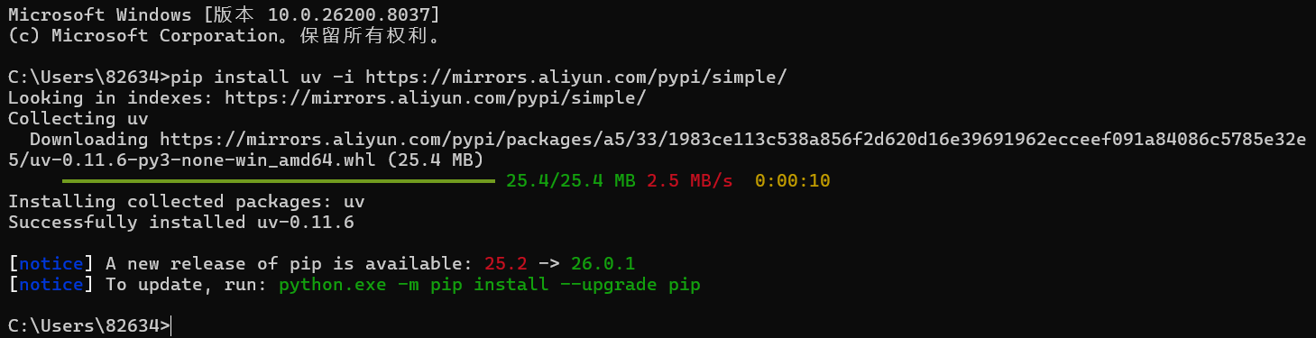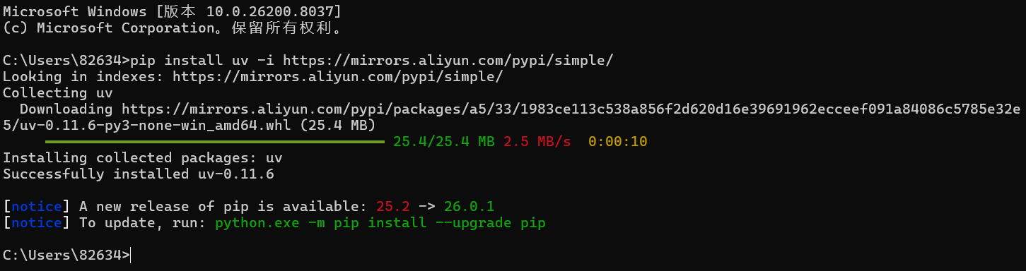 pip install uv -i https://mirrors.aliyun.com/pypi/simple/