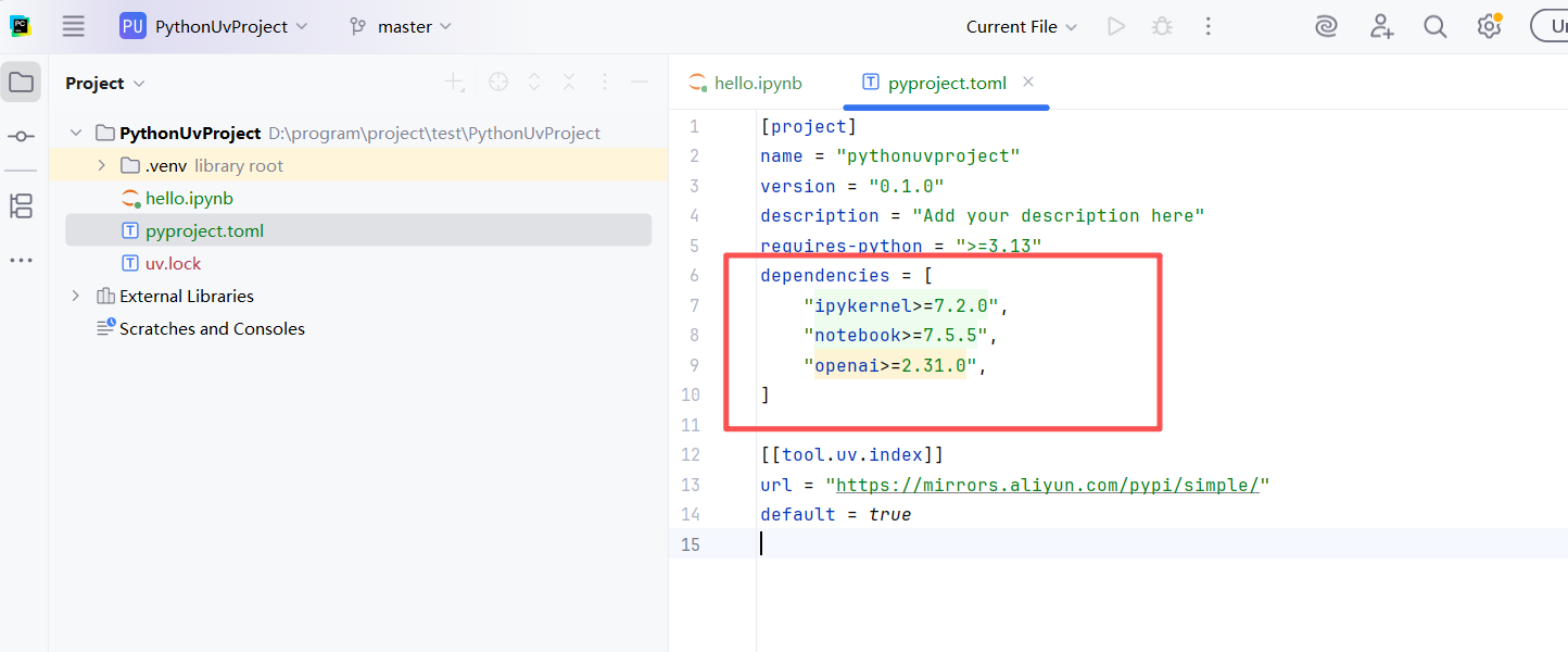默认情况下,uv下载依赖是到国外站点:https://test.pypi.org/simple,速度很慢。推荐大家将下载的镜像源改为国内站点。