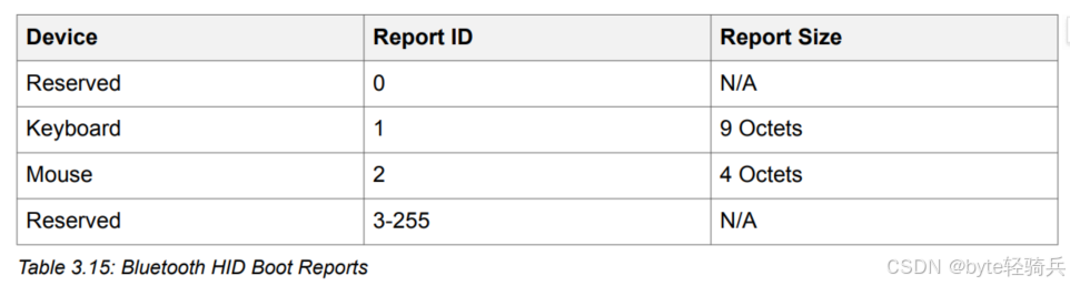支持扩展数据(可选):设备可在固定格式后追加额外数据(用于报告协议模式的扩展功能),但前9字节(键盘)或4字节(鼠标)必须符合引导协议格式,且总长度不得超过46字节(含报告ID),以适配主机的最小MTU(48字节)。
