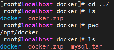 注:最好为每一个镜像建一个文件夹夹,放在和/opt/docker同级的目录下。下面演示的目录因失误,没有用这个规则。