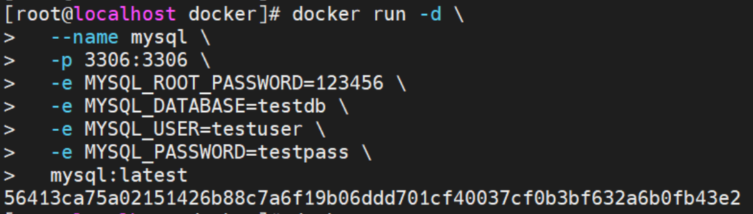 mysql:latest:指定启动的镜像坐标。镜像坐标为[镜像名]:[标签]。可以通过 docker images 命令查看本地已有的镜像及其坐标。执行 docker images 后,输出结果中(上图)会显示 REPOSITORY(镜像名)和 TAG(标签),两者组合就是镜像坐标,比如 mysql:latest 中,mysql 是 REPOSITORY,latest 是 TAG。