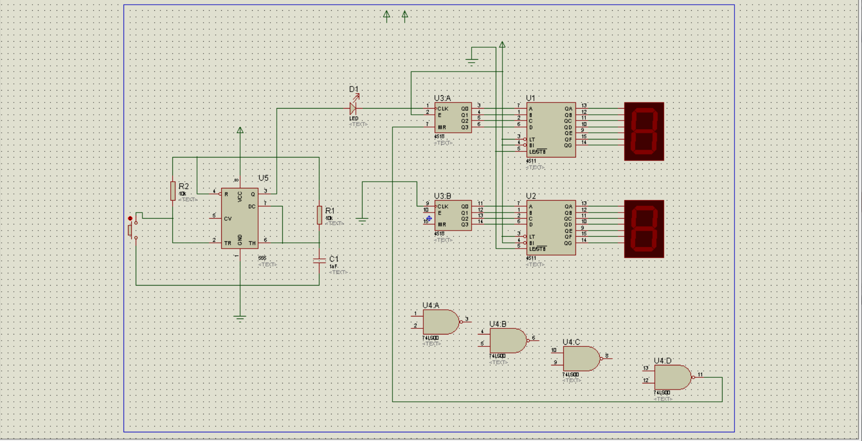 proteus 2位78进制计数器 与非门
