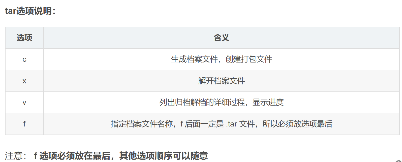 - 在不同操作系统中,常用的打包压缩方式是不同的选项 含义