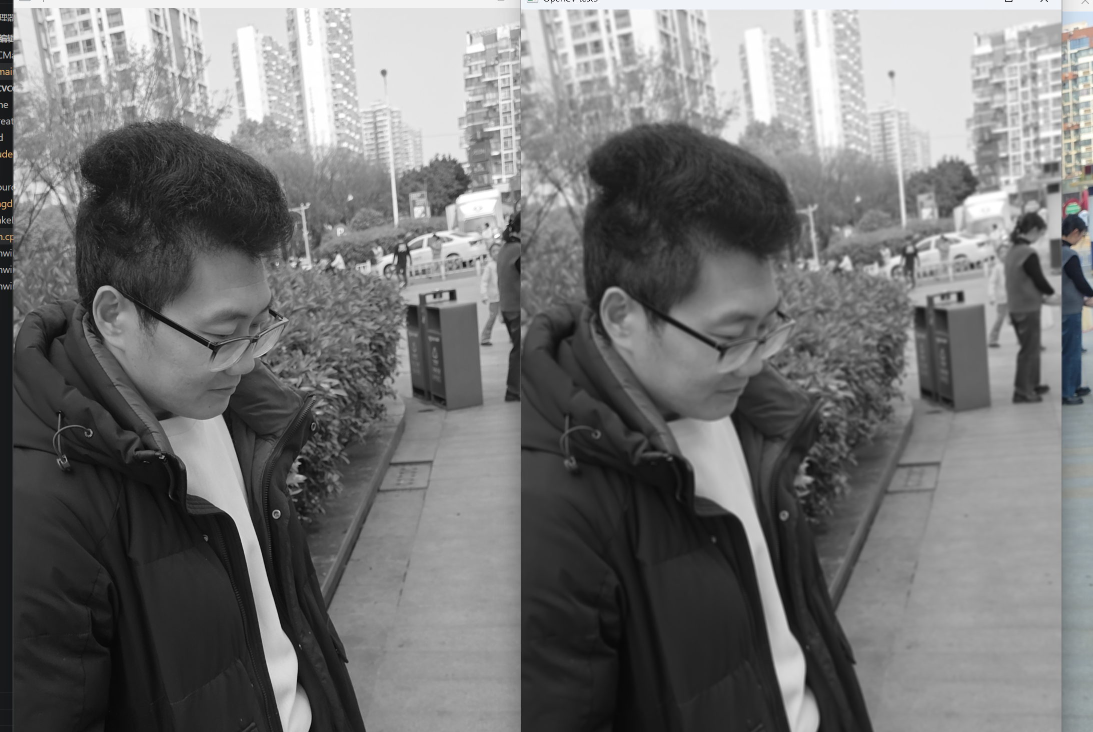 在原有基础上新增一个mat变量存放灰度图,用cvtcolor转换从bgr到grey就行了。