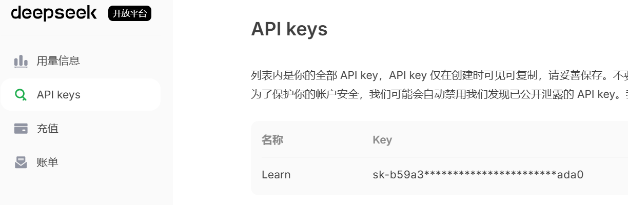 (1)先在 Deepseek 官网申请 API keys