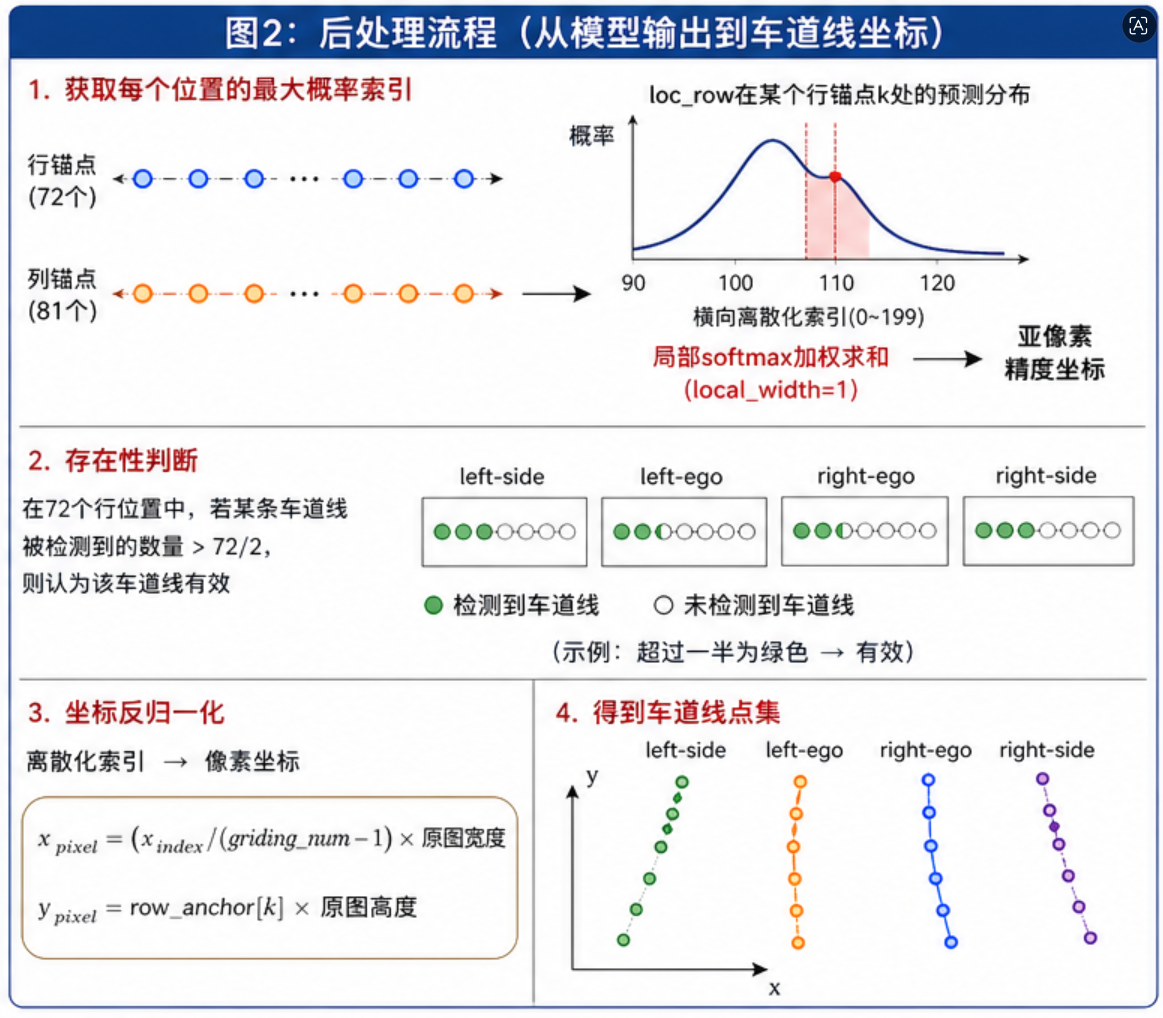 | loc_row | (B, 200, 72, 4) | 72个行位置上,4条车道线的横向位置(200类分类) |