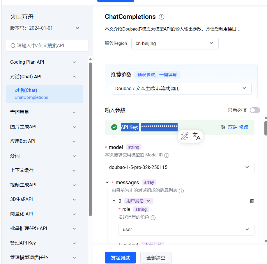 - 豆包是字节跳动火山引擎旗下的大模型。打开火山引擎API文档,能拿到以下关键信息: