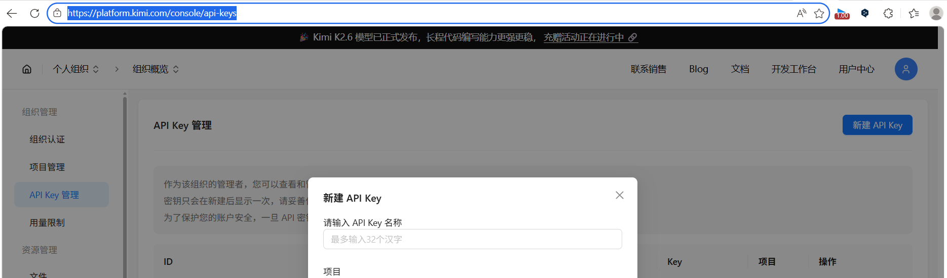 同样我们继续前面的步骤,获取对应的apikey和对应的格式和配置