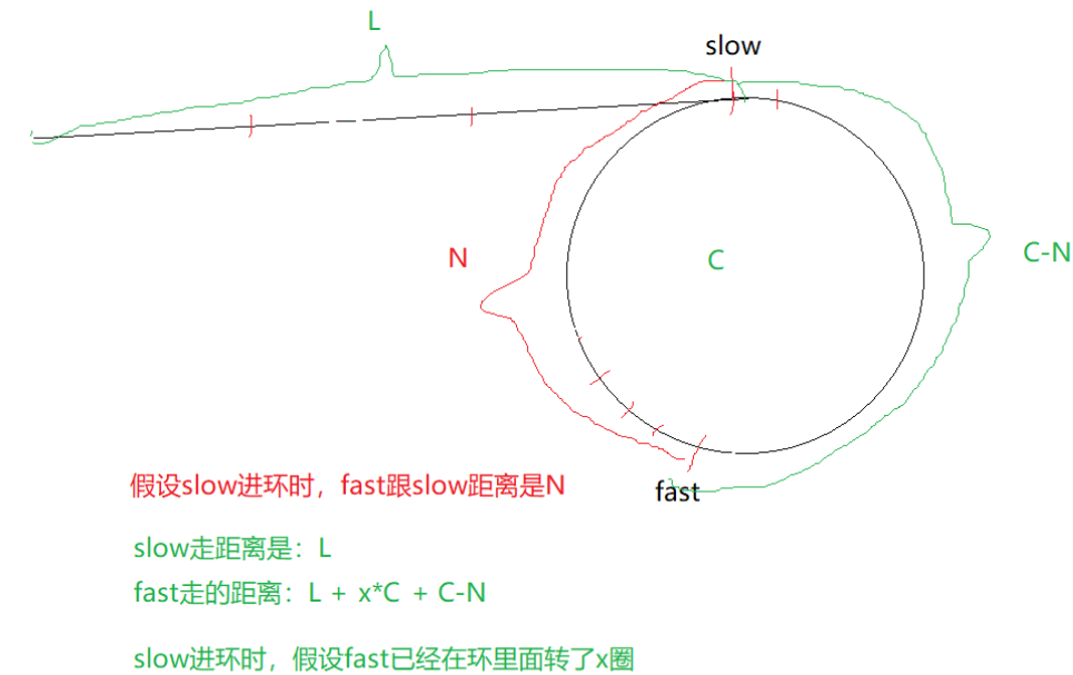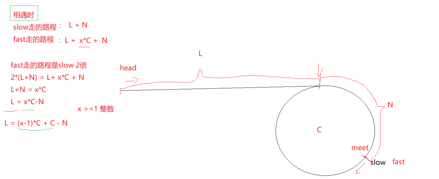 ·(x-1)*C表示相遇点绕环x-1圈后,仍会回到相遇点meet
