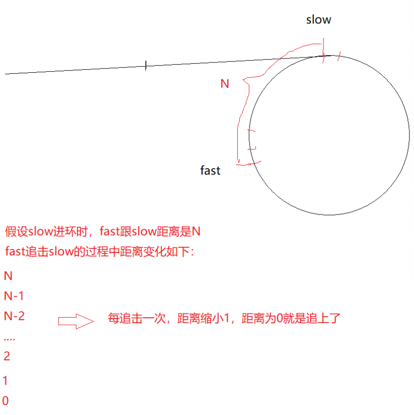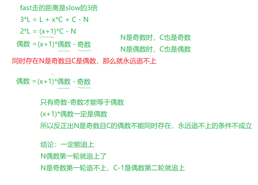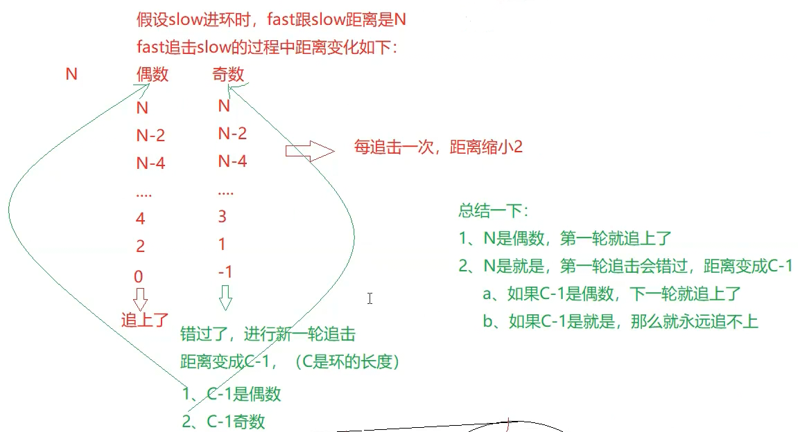 所以我们最开始的推理是有问题的,最终正确的结论是:不管fast走几步都一定能追上slow。